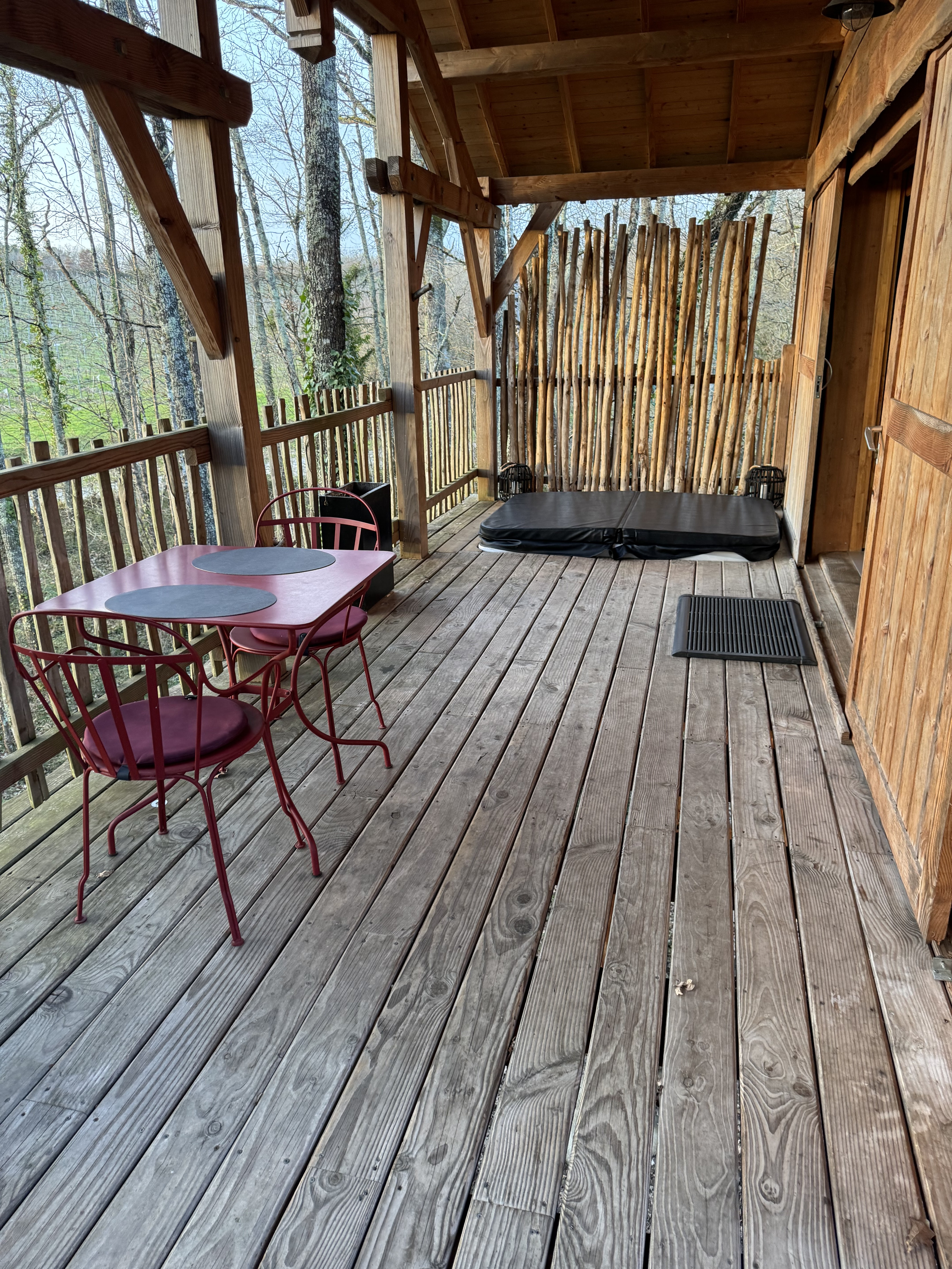 Lieu parfait pour un moment cooconing en amoureux, service super et propriétaire accueillant, nous étions dans les arbres au calme. Intérieur parfait assez luxueux avec un jacuzzi sur la terrasse top👌