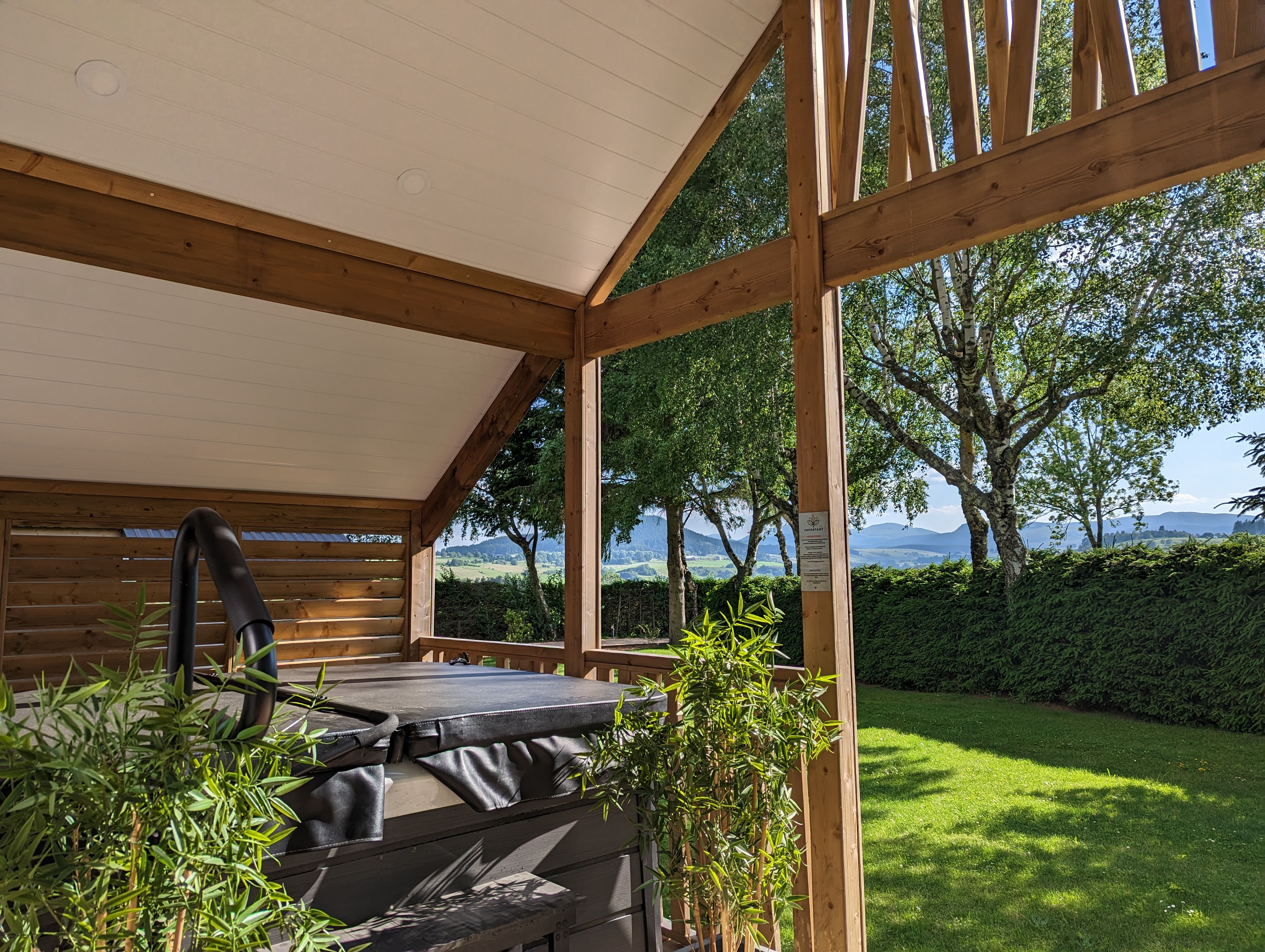 Parfait du début à la fin, notre (trop) court séjour s'est très bien déroulé. Le lodge est très bien équipé, la finition est soignée, l'accueil appliqué et les plats biens préparés. Le petit déjeuner ; livré directement est composé de différents pains et croissants, laitage et morceaux de Saint-Nectaire et jus de pomme artisanal ; est en quantité suffisante. Nous avons pu utiliser le jacuzzi privatif sur la terrasse à volonté : l'après-midi avec la vue, en soirée à la belle étoile et le matin avant de repartir. Les peignoirs fournis sont les bienvenus en sortant de l'eau bouillonnante. En fin de saison estivale, les températures nous ont encore permis de dîner et petit déjeuner sur la terrasse d'où on peut apercevoir une partie de la chaîne des puys. Une escapade à renouveler de temps en temps pour échapper au quotidien. Je recommande.
