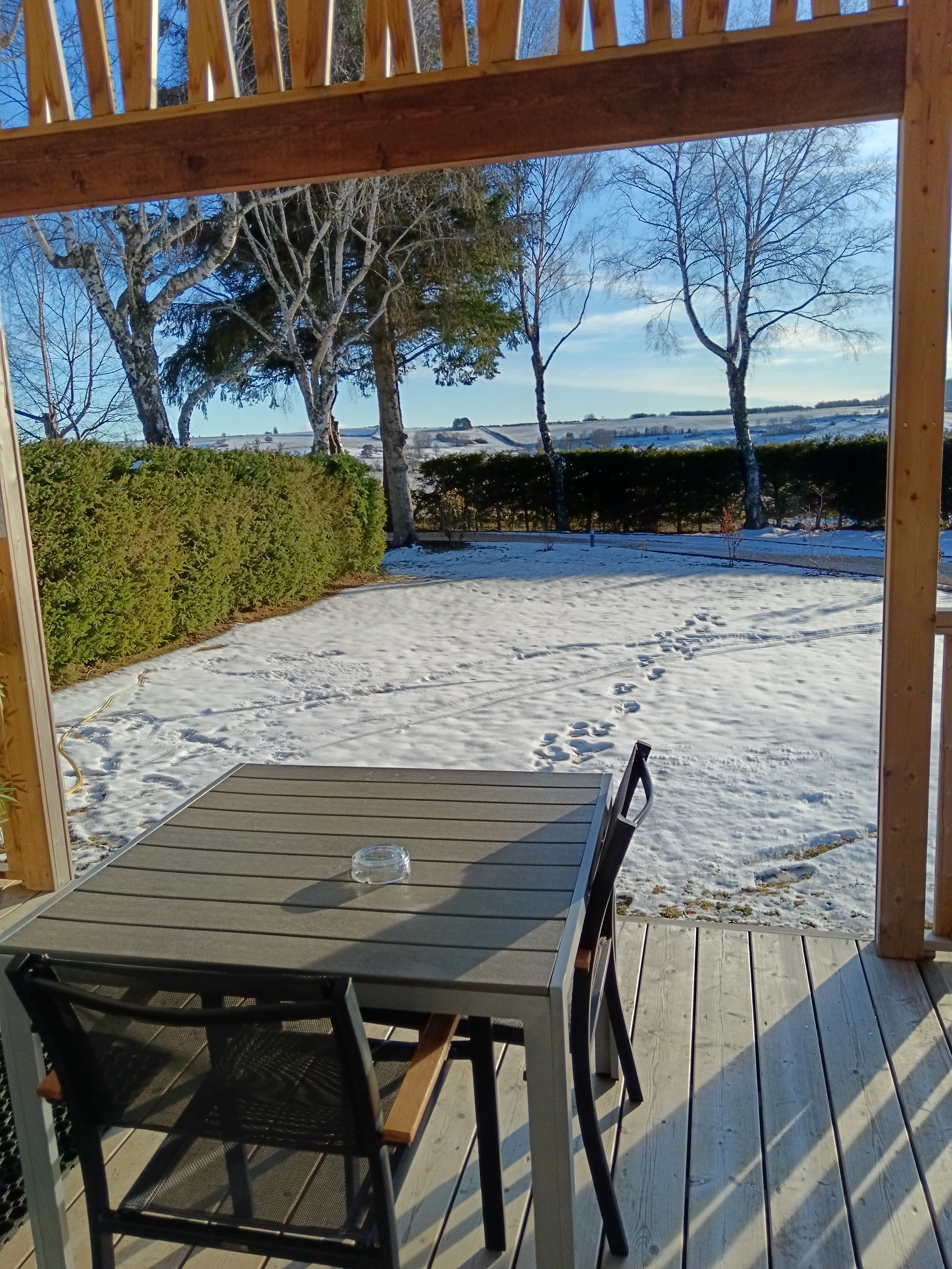 Un très bel endroit, calme et reposant avec une belle vue. Accueil agréable et chaleureux. Petits point négatifs.. Arrivés dans le bungalow avec une température intérieure à 10 degrés pour 2 degrés à l'extérieur. Ça fait juste quand même.🌨🥶. Avons mis presque 3 heures pour revenir à une température d'environ 18 degrés.🥶. Du coup soirée un peu gâchée quand même. Un peu trop de vis à vis à notre goût. Prix un peu élevé pour les prestations proposées. Petits points positifs... Chambre agréable et propre. Cuisine bien équipée. Jacuzzi agréable et à bonne température. Petits déjeuners à l'heure et avec du choix.