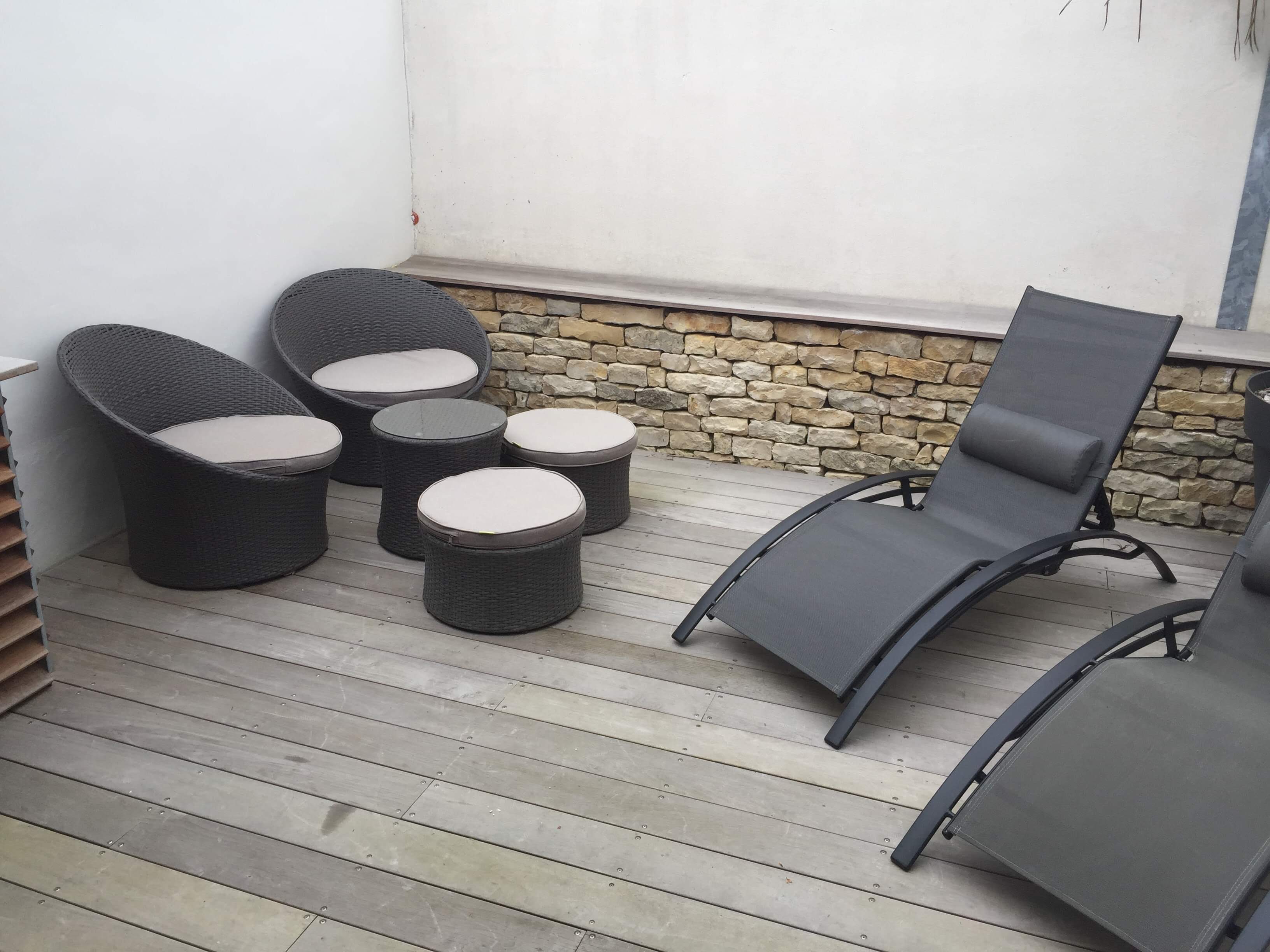 Une très belle chambre avec terrasse au sud dont le prix (élevé) est en rapport avec l'équipement. Avec le confinement le dîner était servi en chambre depuis le (très bon) restaurant attenant à l'hôtel. Cependant on peut regretter que pendant cette période nous ayons dû manger sur la tablette pour ordinateur avec une seule chaise. Heureusement que nous avions amené des sièges pliants pour que l'autre ne doive pas manger sur ses genoux dans un fauteuil. Équiper les chambres d'un siège supplémentaire et d'une petite table semblait trop compliqué pour une chambre à plus de 150 €. Dans l'hôtellerie française haut de gamme on rencontre malheureusement de plus en plus souvent ce manque de professionnalisme.