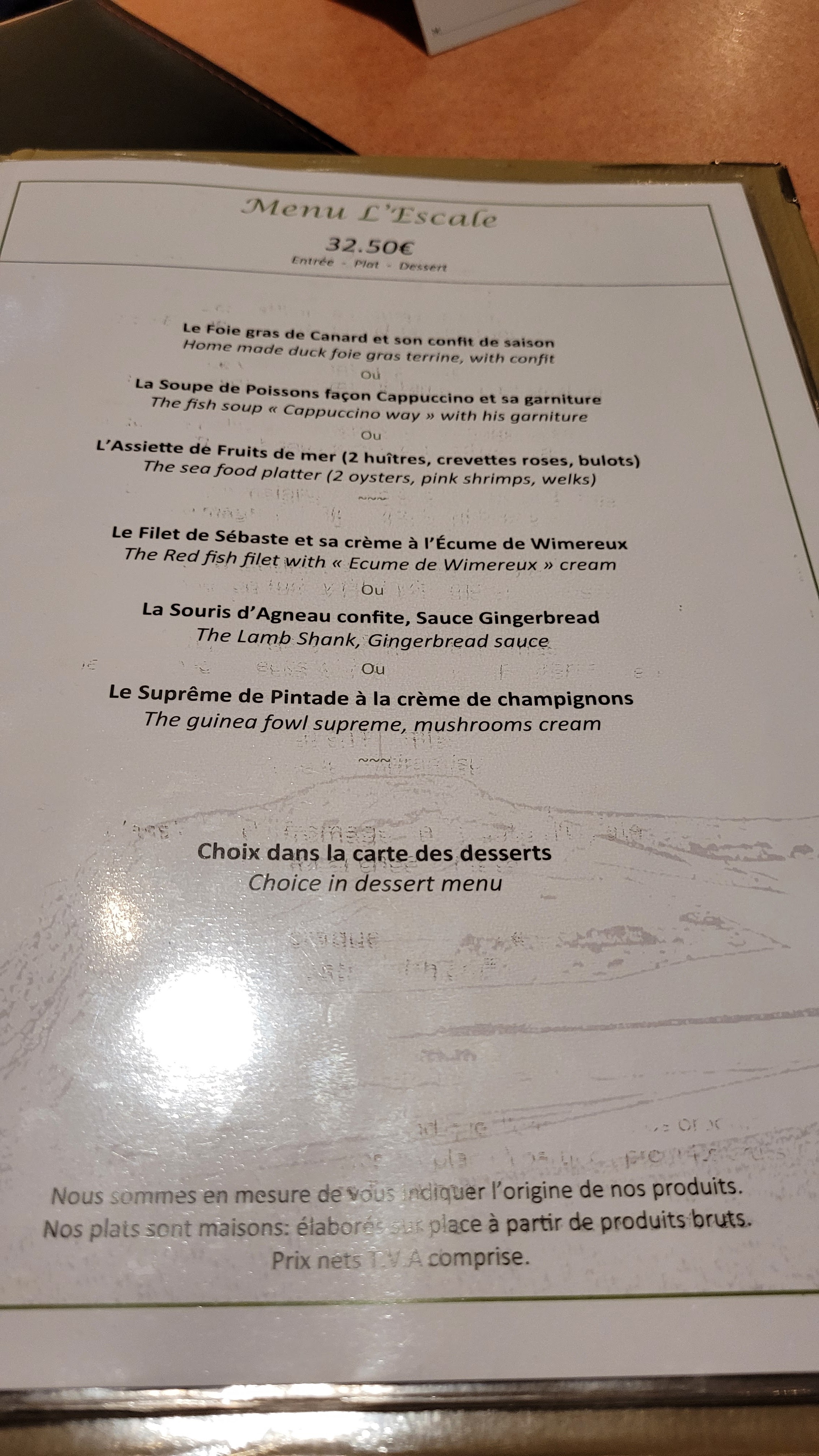 Avons dîné ce soir à l'escale. Repas correct sans plus... Mais une ambiance froide et impersonnelle. Au moment de payer, avons subi une réflexion désobligeante de la part d'une dame employee dans l'établissement. Très décevant, à éviter sauf si vous voulez vous sentir jugés.