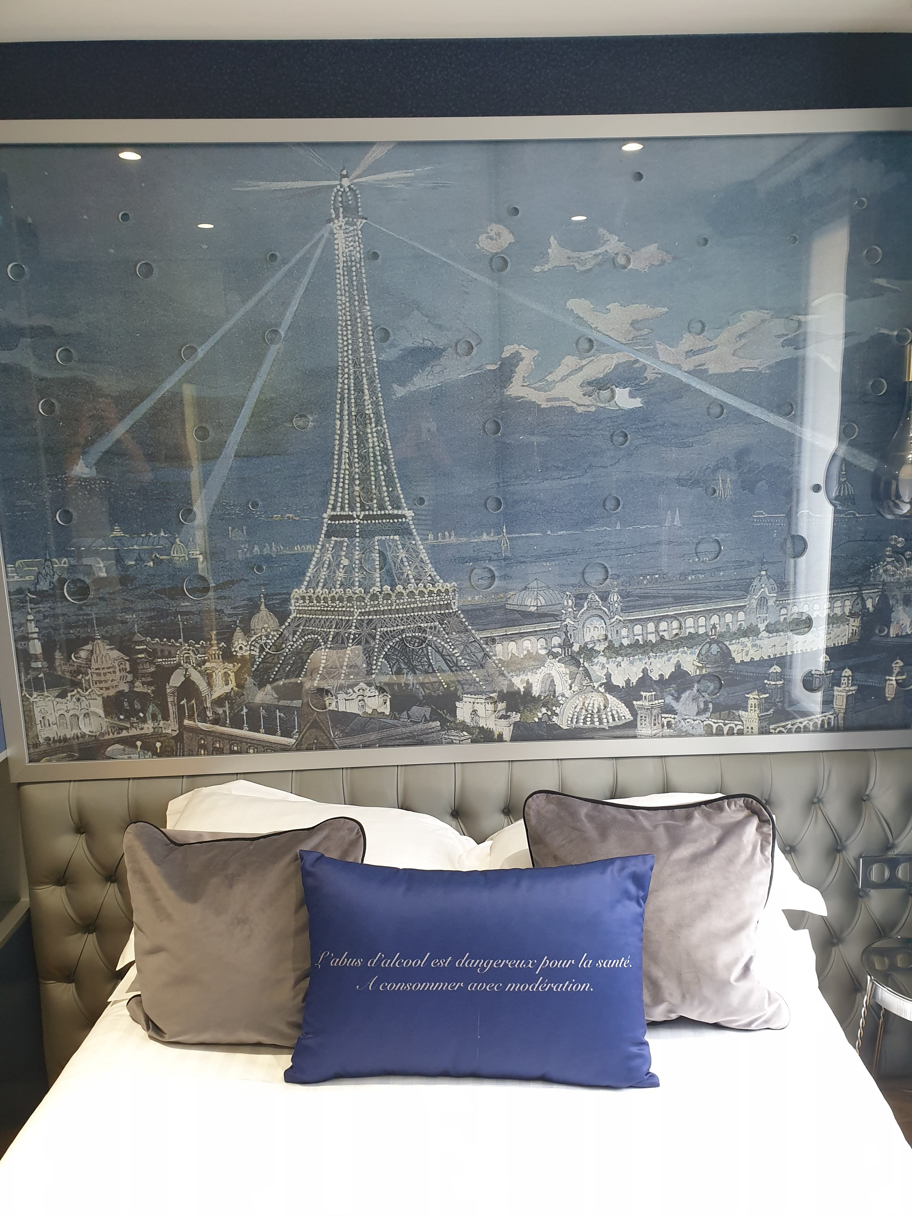 Expérience vraiment sympa ! La chambre n'était pas très grande mais cela n'est pas grave tant la déco est soignée. En effet, c'est le paradis des bulles de champagne. Tabouret, table et lavabo en forme de bouchon de champagne. Lustre en flûtes et même le carrelage avec motifs de bulles. Bref, à découvrir métro le plus proche ligne 10 Maubert-Mutualité et RER B Est Michel.