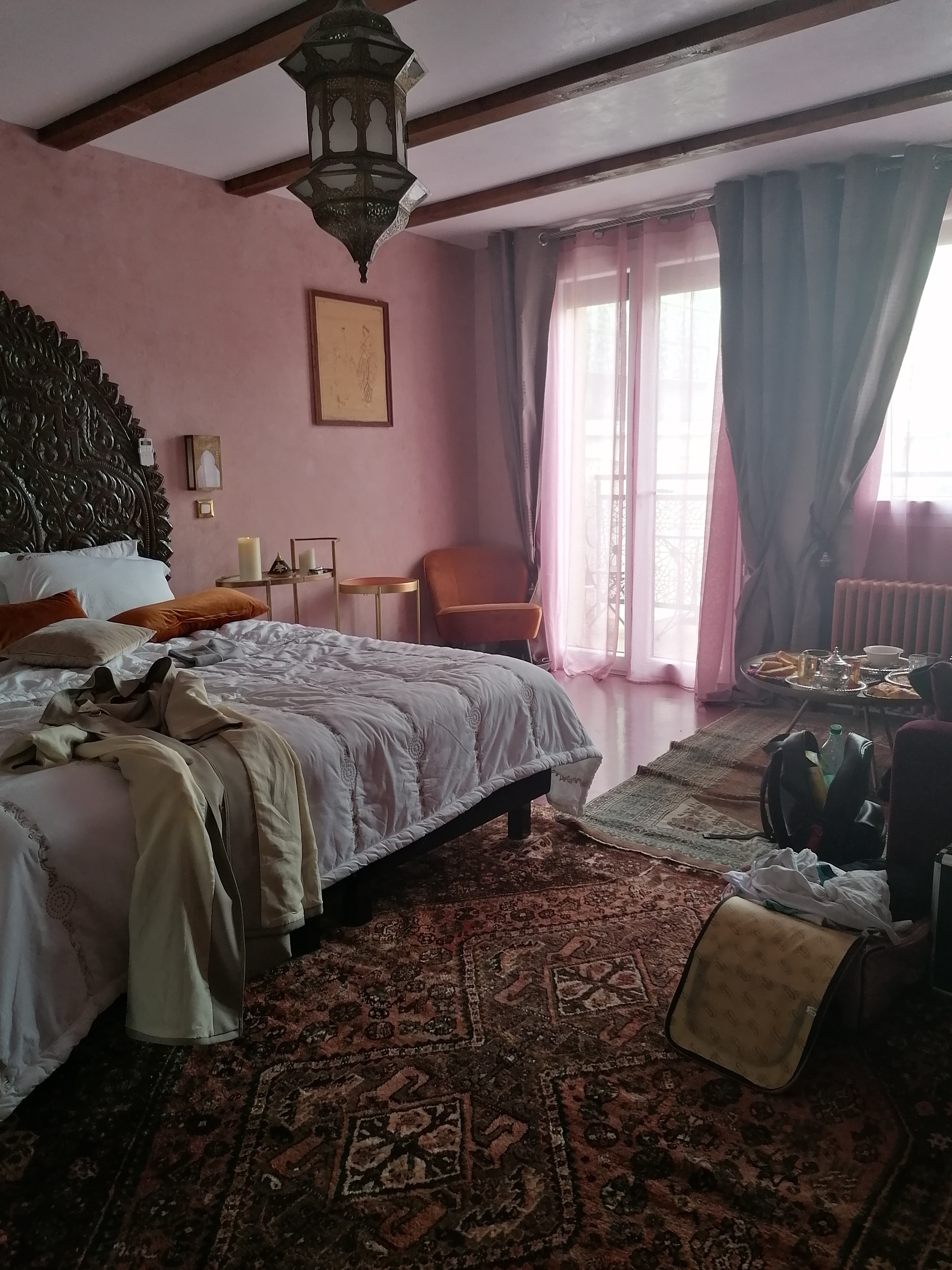 Superbe petit hôtel de 4 suites, chacune avec sa décoration propre (à voir en détail sur leur site Internet). Nous avons choisi la Timimoun et étions enchantés. Belle chambre, belle salle de douche, calme et noir complets et excellente literie. Tous les détails ont été pensés. Petit déjeuner mélangeant pâtisseries salées orientales et viennoiseries françaises, pris dans le salon, propice aux échanges avec les hôtes et autres clients. À 2km du vieux Tours, parking aisé dans les rues adjacentes. Je garde le meilleur pour la fin : hammam privatif près en 30 minutes rien que pour vous (super après une journée de visite de luttez ville en hiver) et surtout un accueil aux petits soins par notre hôte adorable. Dès qu'on y entre c'est le dépaysement total, dans un environnement calme et bienveillant. Pour nous ce fut une parenthèse romantique de 3 jours, sans les enfants, un moment mémorable et original.