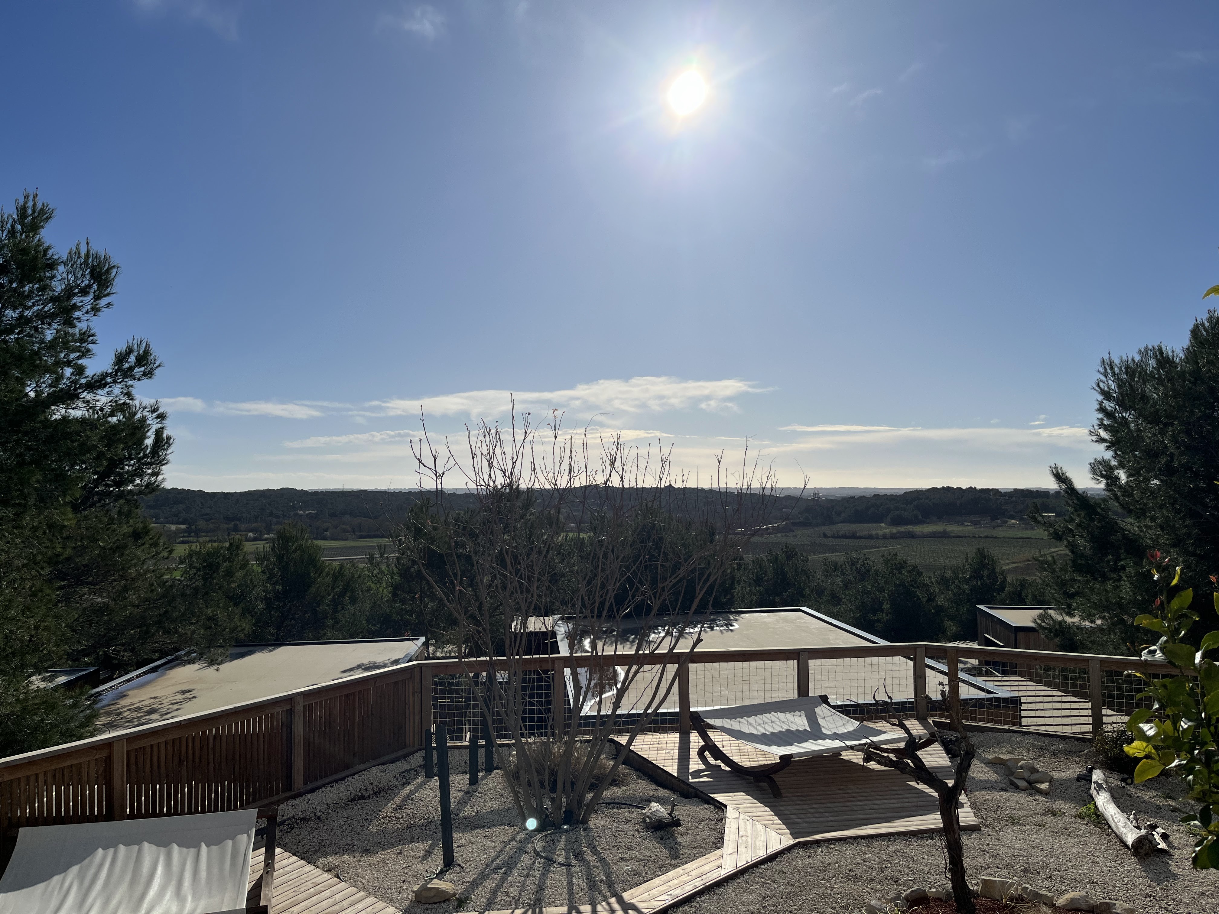 Superbe expérience! Notre chambre était située avec vue sur la vaunage, magnifique réveil! Ambiance très Bali tout en bois façon bohème, c’est vraiment super en plein milieu des pins et surtout dans le calme. La chambre très propre, le seul défaut est que la vitre qui donnait sur la vue était très salle côté extérieur. Le petit déjeuner sur le roof top était très bon et le service d’une gentillesse incroyable. J’ai adoré également le service de voiturettes. 👍🏼👍🏼 Nous reviendrons c’est sur!!
